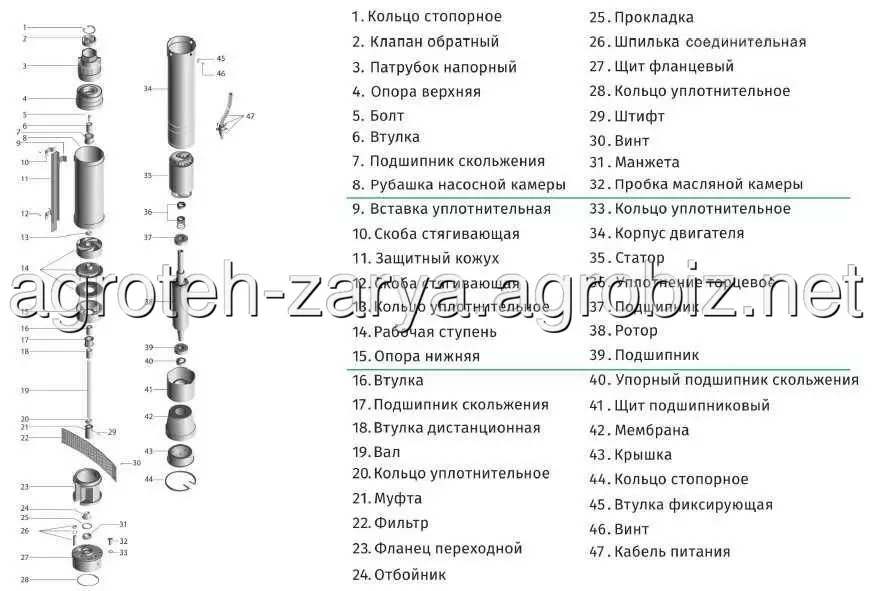 Тип двигуна: асинхронний, маслонаповнений, з вбудованим в обмотку термозахистом;