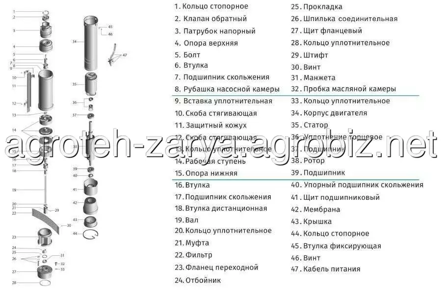 Тип двигуна: асинхронний, маслонаповнений, з вбудованим в обмотку термозахистом;