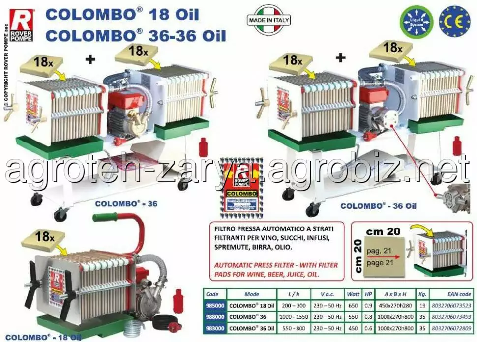Застосування: фільтр-прес для соку, молока, сироватки, перекачування вина, виноматеріалу, пива, сусла, браги, сиропу, води, емульсії і масла.COLOMBO® FILTRO PULCINO® FILTER складається з спеціального електричного насоса і системи фільтрації, званої рідинної системою з пресованими листами. Цей конкретний тип фільтрації дозволяє отримати чудовий рівень очищення напоїв без зміни основних характеристик рідини після декантеру; з цієї причини він особливо цінується для побутової фільтрації, але також і в професійному секторі, такому як винні погреби, фармацевтичні заводи, лабораторії, пивоварні; Коротше кажучи, скрізь, де необхідно фільтрувати напій, щоб можна було подати його або розлити в пляшки абсолютно прозорими і без будь-яких слідів небажаних залишків.