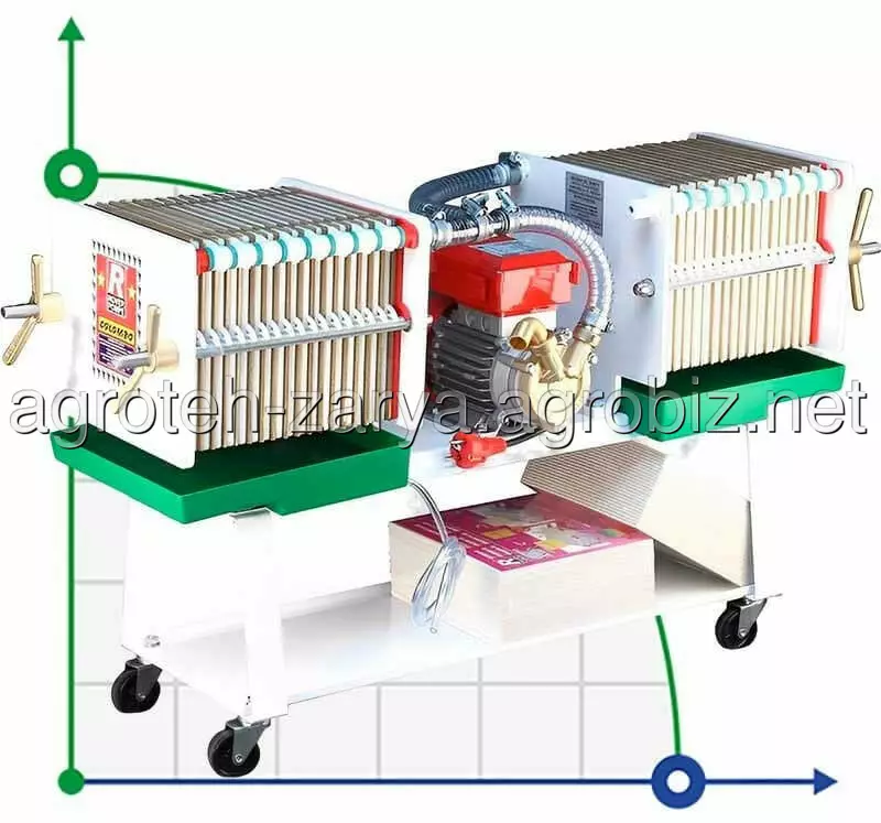 Він особливо підходить для фільтрації вина, води, настоїв, пива, фармацевтичних розчинів, парфумерії. Він не вимагає особливого догляду, крім звичайного очищення. Фільтрація-останній крок у виробництві вина, що вимагає знання деяких основних запобіжних заходів. Молоде вино (30 днів) не готове до тонкої фільтрації. Дотримуючись наших інструкцій, ви знайдете правильний спосіб досягти гарної фільтрації. Для досягнення найкращих результатів вино слід витримати не менше двох-трьох місяців і довести до кімнатної температури перед фільтрацією. За цей час вино приймає форму і дозволяє осісти більшості підвішених частин. На цьому етапі використовуйте фільтр-прес, щоб закінчити вино. Якщо потрібна чудова обробка, використовуйте фільтри для ополіскувача. Не забудьте почекати від двох до чотирьох днів між одним фільтром і іншим. Якщо, з іншого боку, ви хочете відфільтрувати молоде вино (30 днів), ви завжди повинні спочатку використовувати грубий фільтр; відразу після можна використовувати фільтр для обробки. Під час фільтрації молоде вино струшують через присутність СО2 (двоокису вуглецю), що утворюється під час бродіння; почекайте кілька годин, перш ніж розливати вино по пляшках.