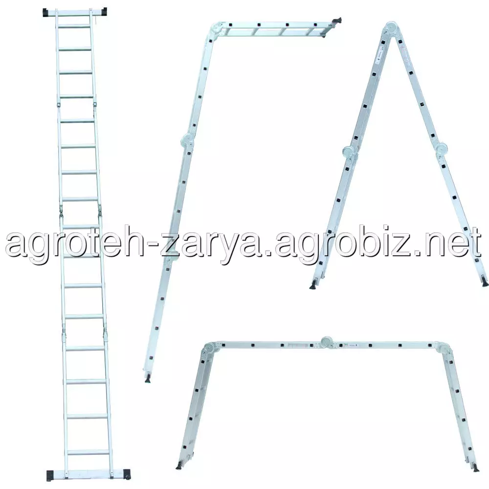 Драбина багатоцільова алюмінієва 4×4 сходинок 4.58м FLORA (5031324)