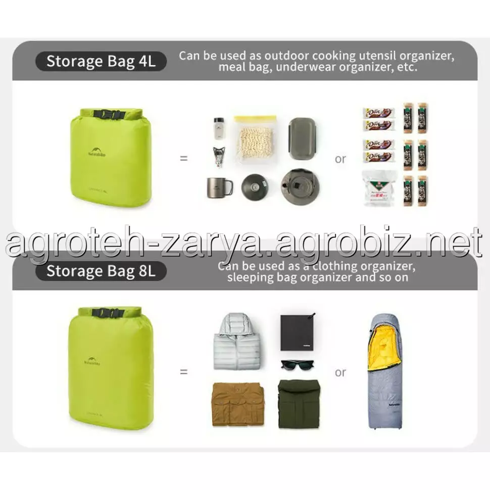 Об'єм гермомішка Naturehike CNK2550XB012 складає 8 л, чого достатньо для зберігання найважливіших дрібниць під час походів, велопрогулянок та подорожей.