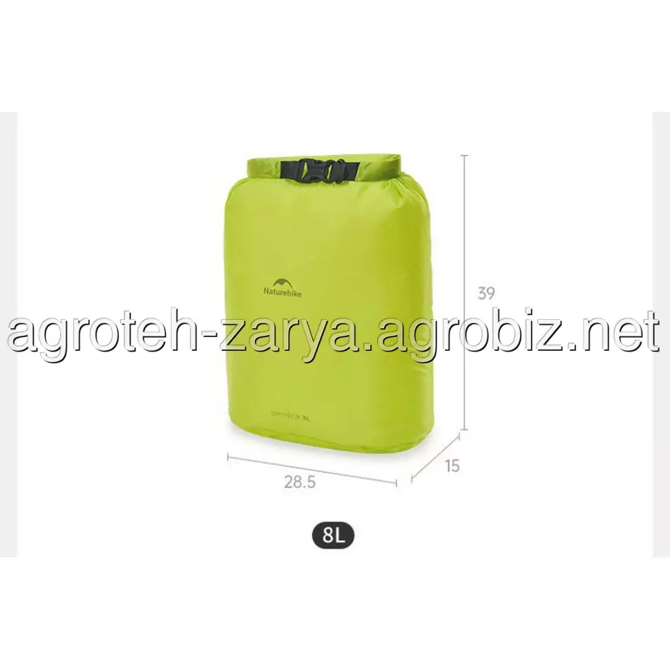 Об'єм гермомішка Naturehike CNK2550XB012 складає 8 л, чого достатньо для зберігання найважливіших дрібниць під час походів, велопрогулянок та подорожей.