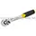 Додатковий вигин рукоятки дозволяє працювати у важкодоступних місцях. Реверсивний механізм, яким обладнаний ключ-тріскачка, дозволяє вибирати напрямок обертання інструменту. Храпових модуль дозволяє демонтувати елементи кріплення без відриву інструменту від відкручувати деталі. Це дуже цінна якість, завдяки якому можливо здійснювати монтажні і демонтажні роботи в місцях з обмеженим простором. Ключ-тріскачка має невеликий крутний момент, працює плавно і м'яко, що забезпечує комфорт під час роботи. Конструкція передбачає кнопку швидкого скидання для швидкої зміни торцевих головок. Для збільшення зносостійкості і довговічності має додаткове антикорозійне покриття, яке є надійним захистом від іржавіння, негативних термічних і хімічних впливів.