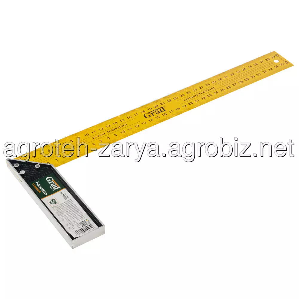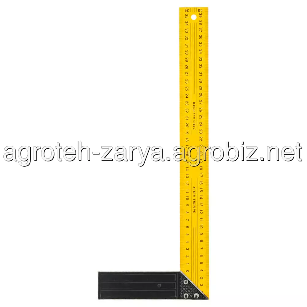 Металевий кутник з пофарбованою поверхнею і двосторонньою розміткою полотна. Призначений для розмітки і перевірки прямих кутів, а також для перевірки кута 45° при опрацюванні та складанні виробів.