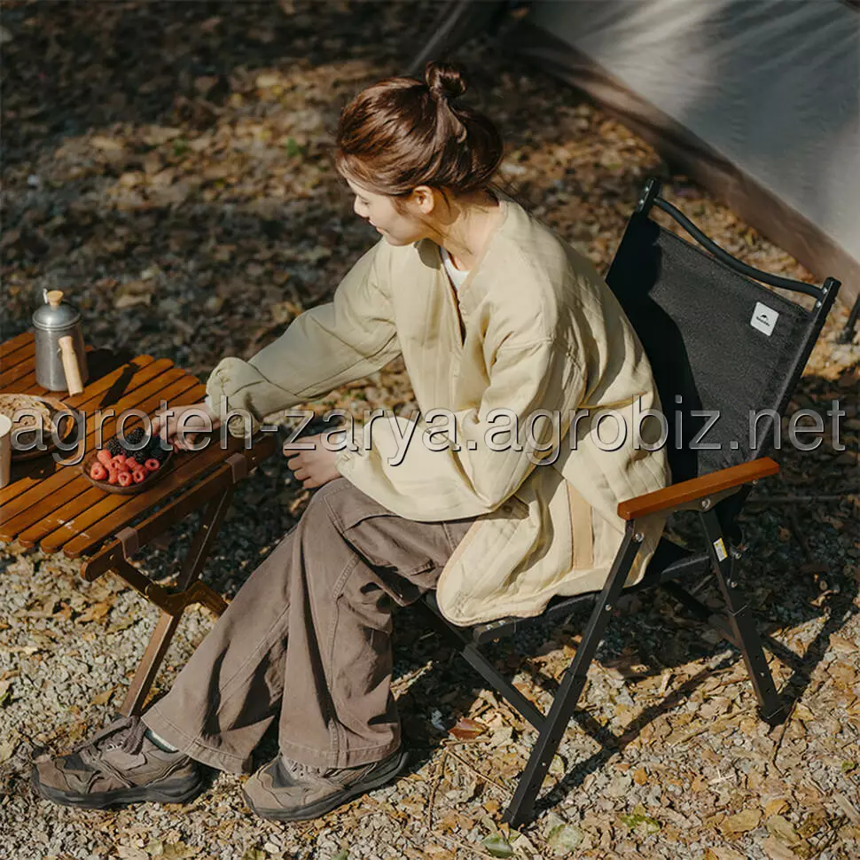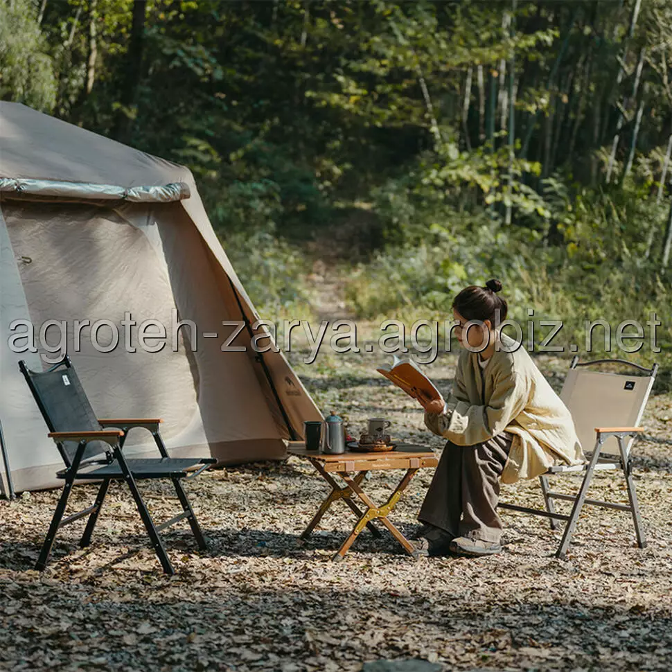 Конструкція складаного крісла Naturehike CNK2550JJ010 продумана до дрібниць: воно розкладається та встановлюється в один рух, пропонуючи повне розслаблення завдяки спинці середньої висоти.