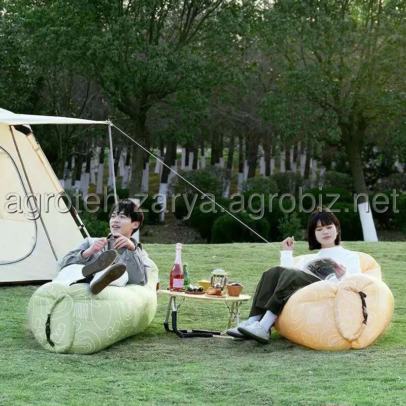 Ламзак є зручним місцем для відпочинку. Він може служити альтернативою стільцям або матрацам на відкритому повітрі та забезпечувати підтримку тіла під час сидіння чи лежання. Цей мішок можна використовувати як крісло, лежак і навіть імпровізований гамак. Він підходить для різних ситуацій та активностей. Ламзак виготовлений із матеріалу, стійкого до поривів вітру та до дії вологи, що робить його довговічним та здатним витримувати різні умови експлуатації. Надувний мішок можна використовувати для активного відпочинку на природі. Він виконаний у приємному бежевому кольорі та прикрашений абстрактним принтом. Виріб легко очищається від забруднень і швидко сохне у разі намокання. Розмір його у складеному вигляді 30*18 см, у розкладеному – 180*70*52 см. Вага виробу складає 730 грам.