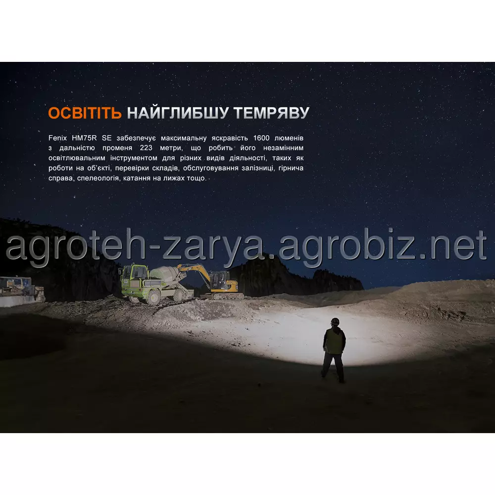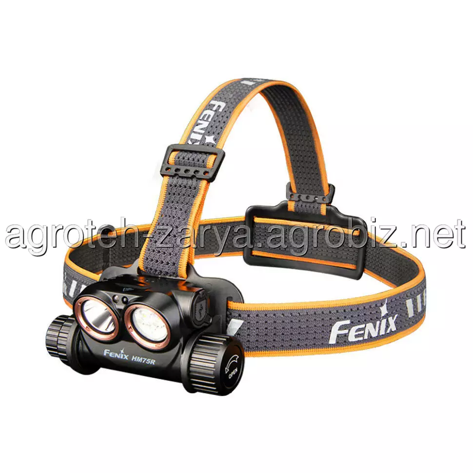 Ліхтар Fenix HM75R з налобним кріпленням, li-ion акумулятор ARB-L18-3400, зарядний кабель USB Type-C, запасне ущільнювальне кільце, гарантійний талон, інструкція користувача.