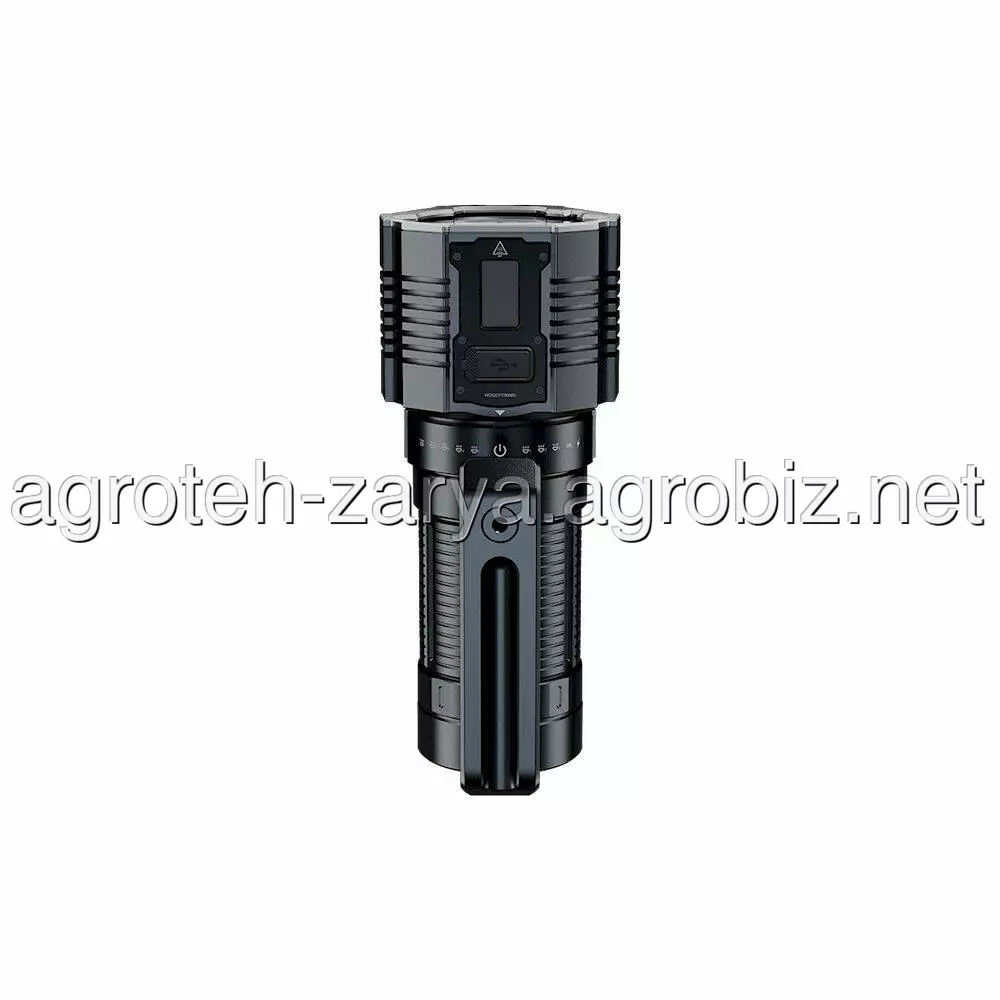 Зарядний порт USB Type-C знаходиться поряд з OLED-дисплеєм, який автоматично загоряється в момент початку заряджання та відображає рівень заряду акумуляторів. Ліхтар підтримує функцію швидкого заряджання при використанні зарядного адаптера потужністю 45 Вт і вище, тому весь процес триває не більше 1.5 години.