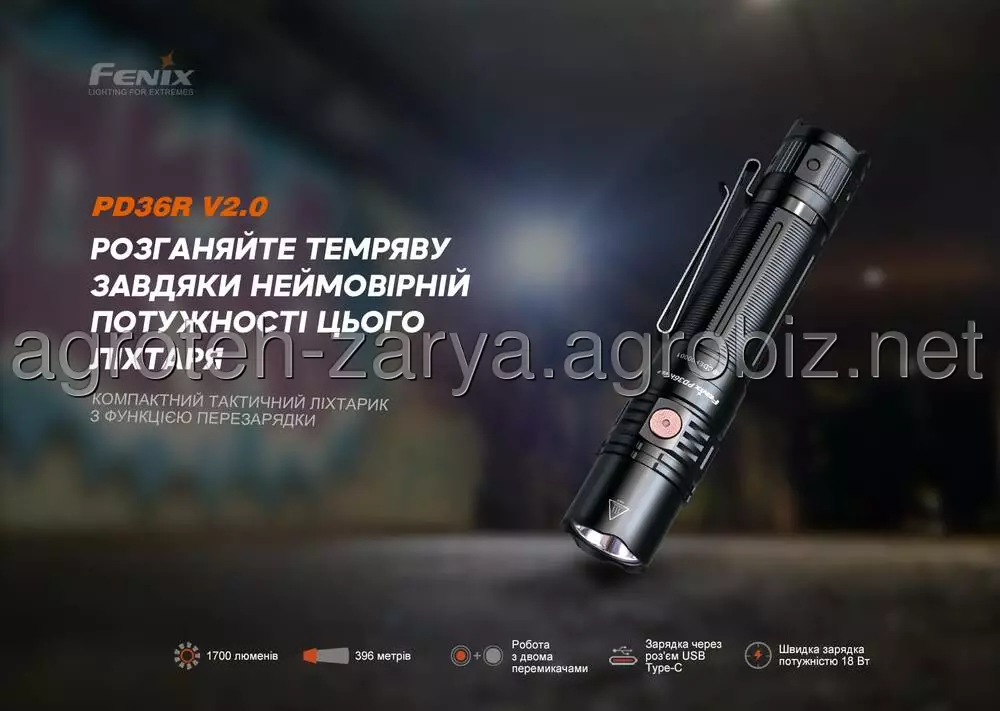 Опис ручного ліхтаря Fenix PD36R V2.0: