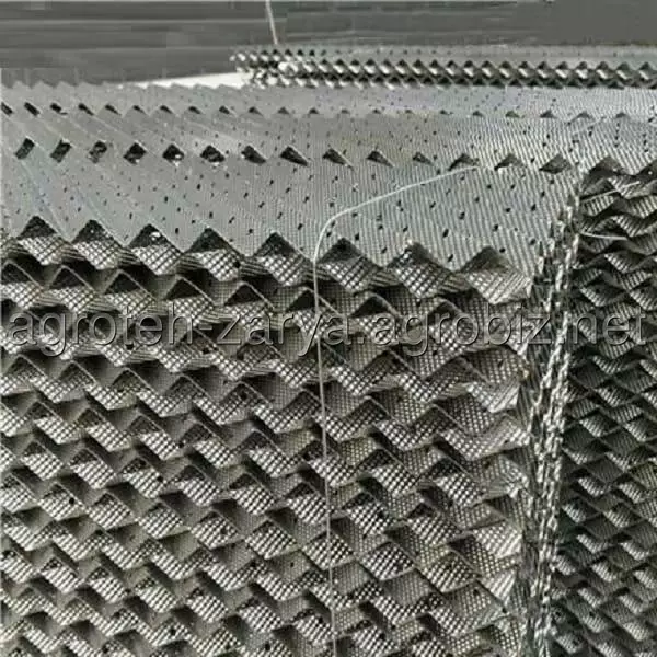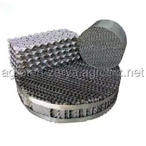 Металева структурована насадка SM450Y - перфорована пластинчаста гофрована насадка.Ключові слова: металева перфорована пластинчаста пластинчаста гофрована насадка, металева дротяна сітчаста насадка, металева структурована насадка