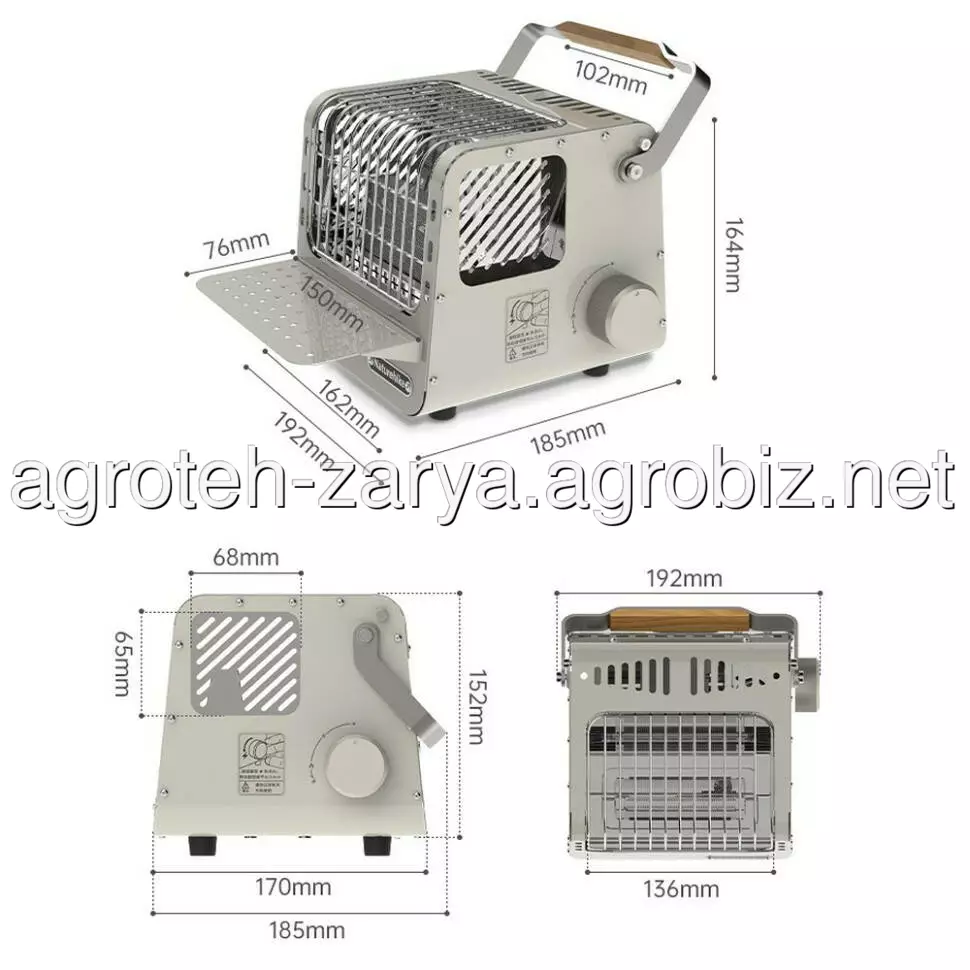 Обігрівач має компактні розміри — лише 192 х 185 х 164 мм. У сукупності з легкою вагою, що дорівнює 1,4 кг, корпус легко переносити в польових умовах — для зручності транспортування передбачена ручка із вставкою з деревини.