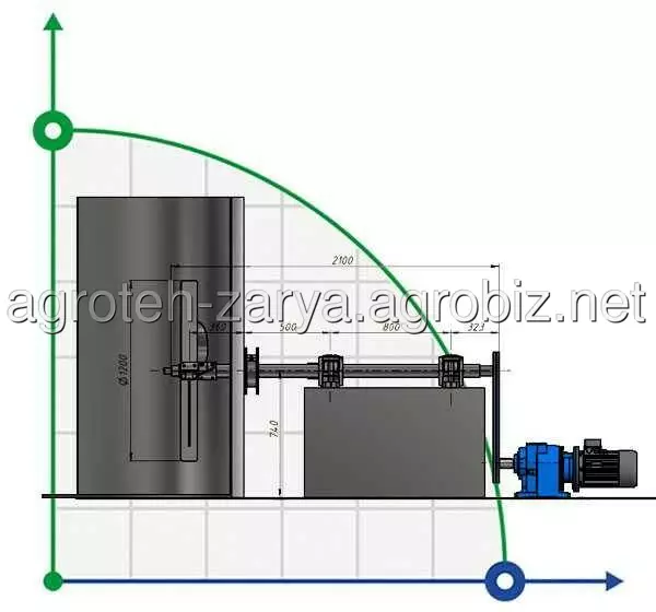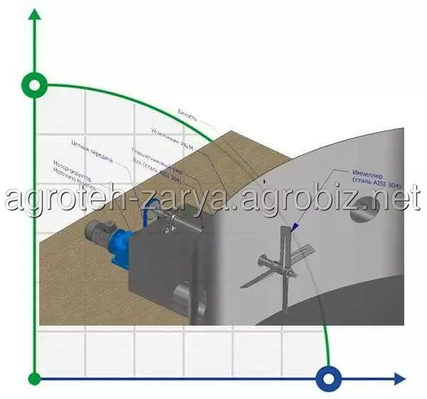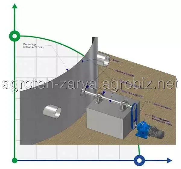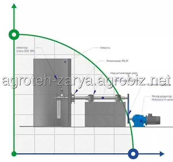 Привід мішалки здійснюється за допомогою ланцюгової передачі, мотор-редуктором підвищеної надійності італійської фірми Motovario.