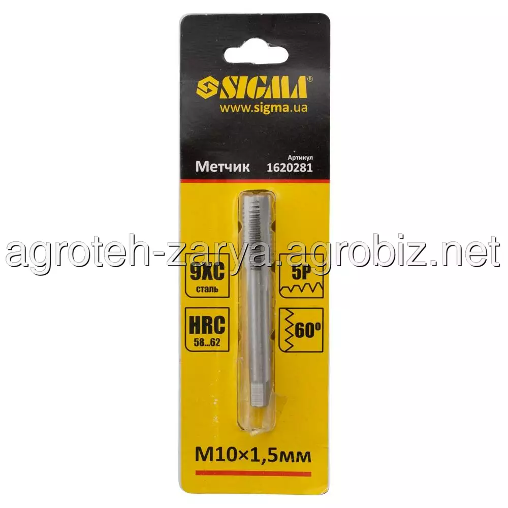 Мітчик М10×1.5мм SIGMA (1620281) призначений для нарізування внутрішніх різьблень. Являє собою гвинт з прорізаними стружковими канавками, що утворюють ріжучі кромки. Хвостовою частиною кріпиться в тримач для мітчиків (комірець), робочою частиною вводиться в отвір, в якому при провертанні тримача зворотно-поступальними рухами нарізається різьба. При нарізанні, різьблення, попередньо, змащують консистентним мастилом.
