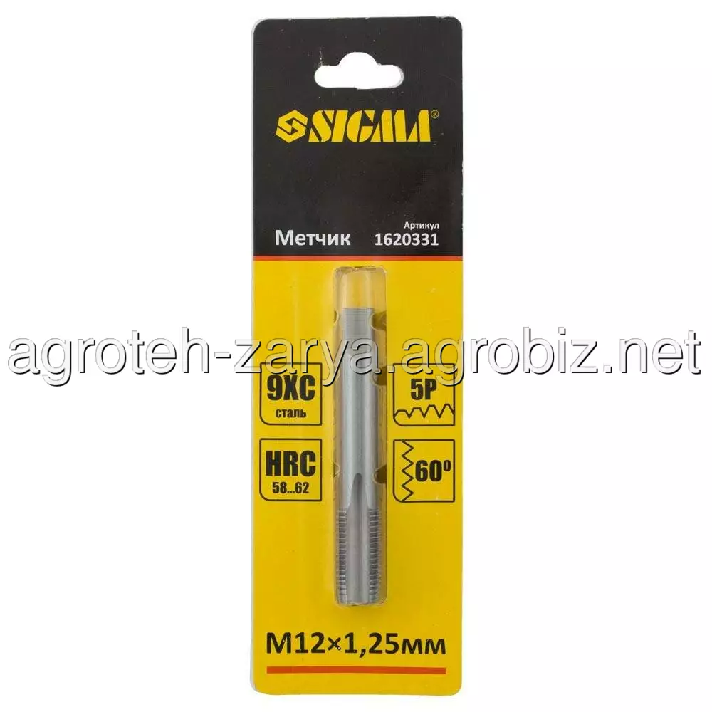 Мітчик М12×1.25мм SIGMA (1620331) призначений для нарізування внутрішніх різьблень. Являє собою гвинт з прорізаними стружковими канавками, що утворюють ріжучі кромки. Хвостовою частиною кріпиться в тримач для мітчиків (комірець), робочою частиною вводиться в отвір, в якому при провертанні тримача зворотно-поступальними рухами нарізається різьба. При нарізанні, різьблення, попередньо, змащують консистентним мастилом.