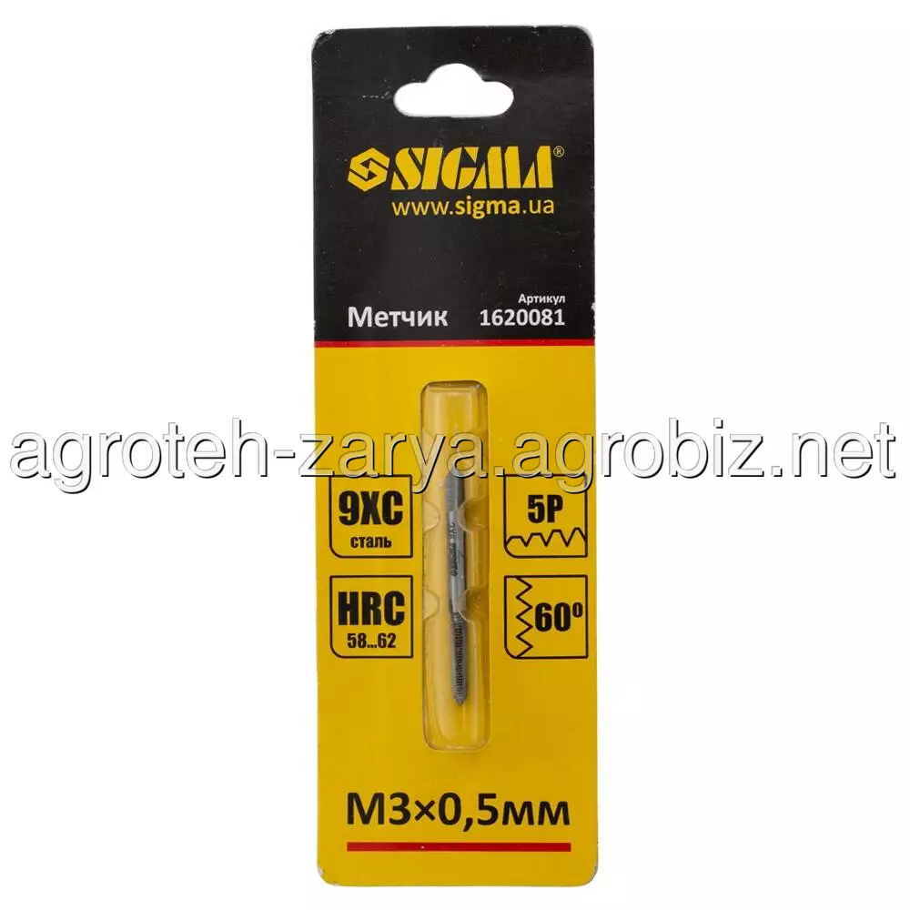 Мітчик М3×0.5мм SIGMA (1620081) призначений для нарізування внутрішніх різьблень. Являє собою гвинт з прорізаними стружковими канавками, що утворюють ріжучі кромки. Хвостовою частиною кріпиться в тримач для мітчиків (комірець), робочою частиною вводиться в отвір, в якому при провертанні тримача зворотно-поступальними рухами нарізається різьба. При нарізанні, різьблення, попередньо, змащують консистентним мастилом.