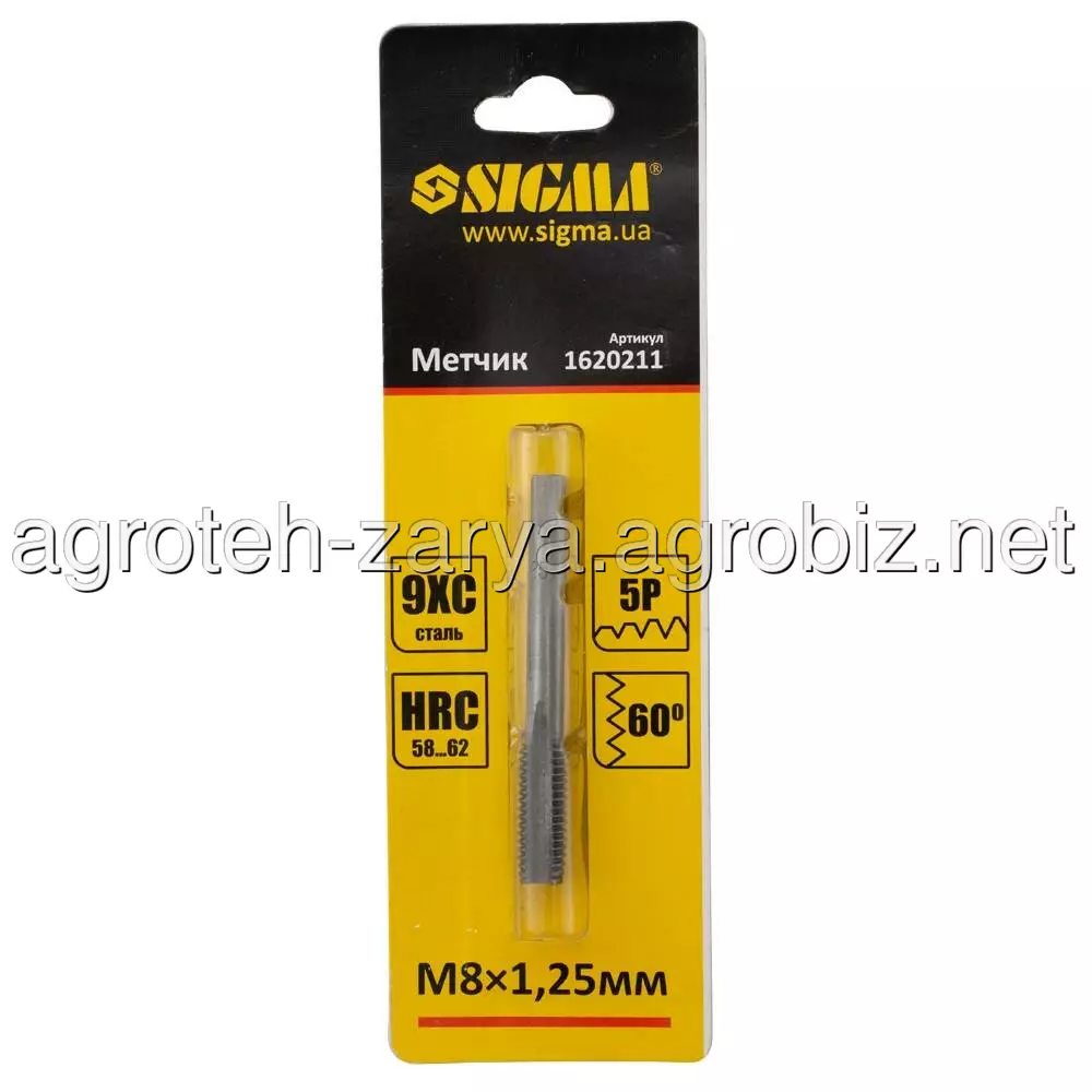 Мітчик М8×1.25мм SIGMA (1620211) призначений для нарізування внутрішніх різьблень. Являє собою гвинт з прорізаними стружковими канавками, що утворюють ріжучі кромки. Хвостовою частиною кріпиться в тримач для мітчиків (комірець), робочою частиною вводиться в отвір, в якому при провертанні тримача зворотно-поступальними рухами нарізається різьба. При нарізанні, різьблення, попередньо, змащують консистентним мастилом.