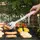 Ключова особливість мультитула — можливість з'єднати виделку та лопатку, перетворивши їх на повнорозмірні щипці, щоб переносити продукти з розжареної решітки на тарілку.
