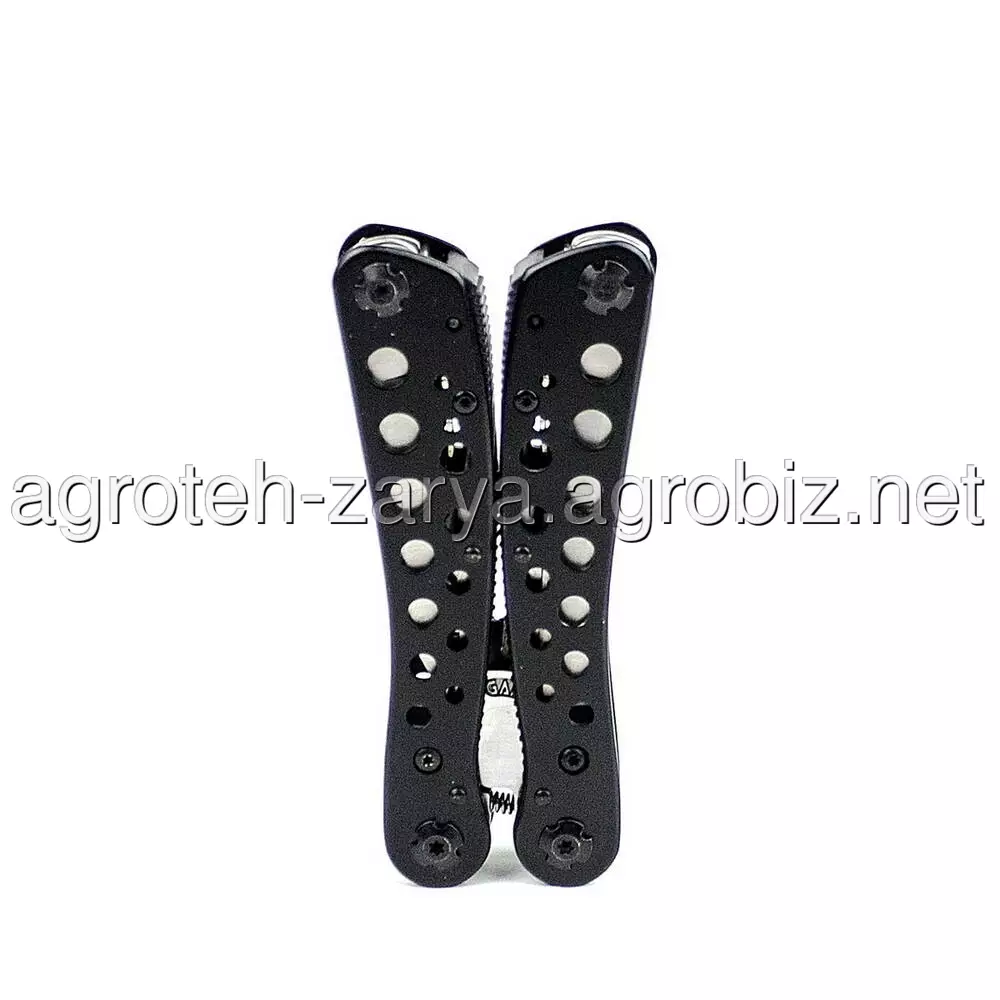 Рукоятки мультитула теж зроблені з металу і покриті чорною фарбою, що не стирається з часом. Поверхня накладок прикрашена за допомогою круглих отворів, які, одночасно, допомагають знизити вагу інструменту. Ganzo G204 переважати 253 грама.