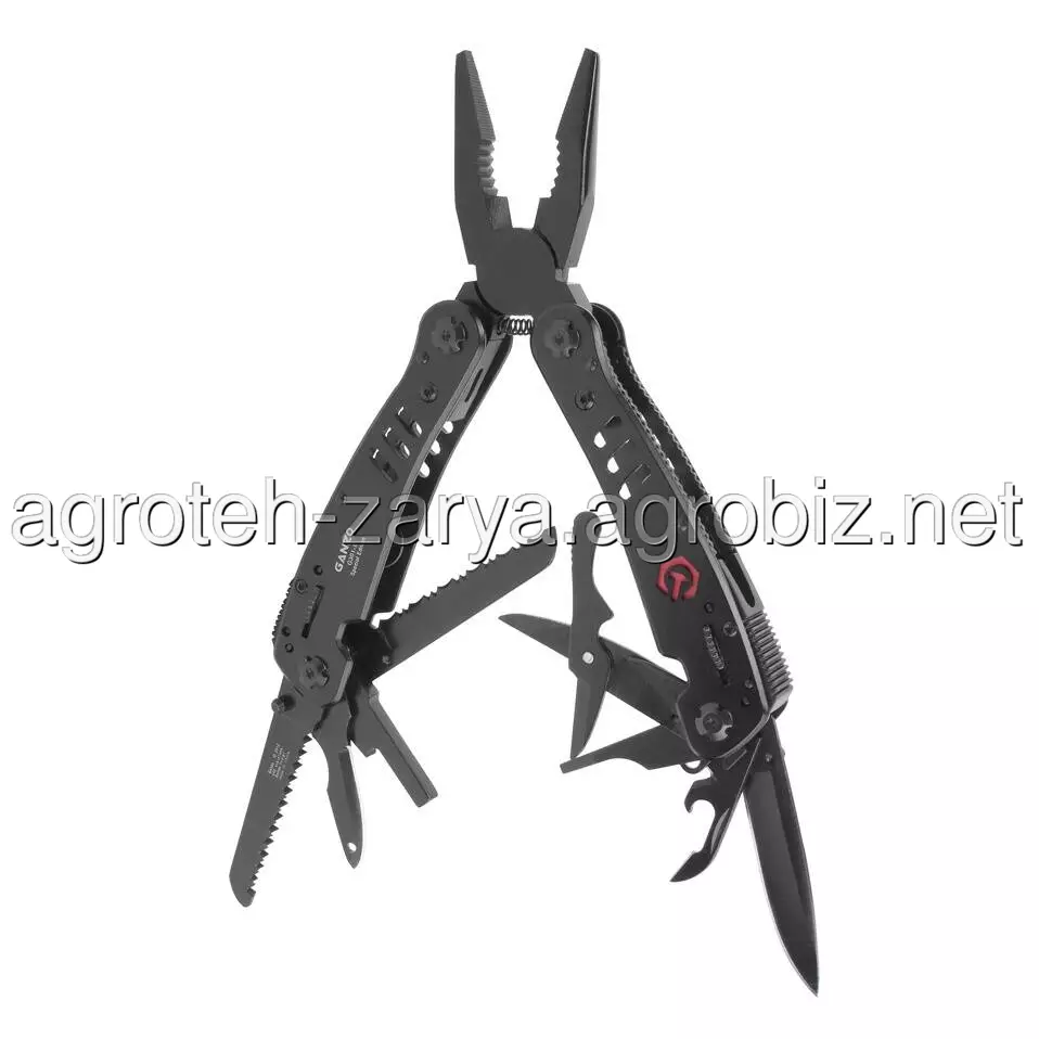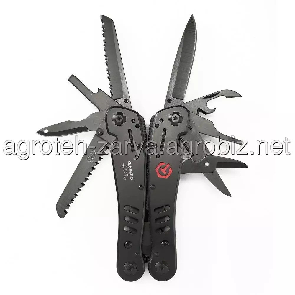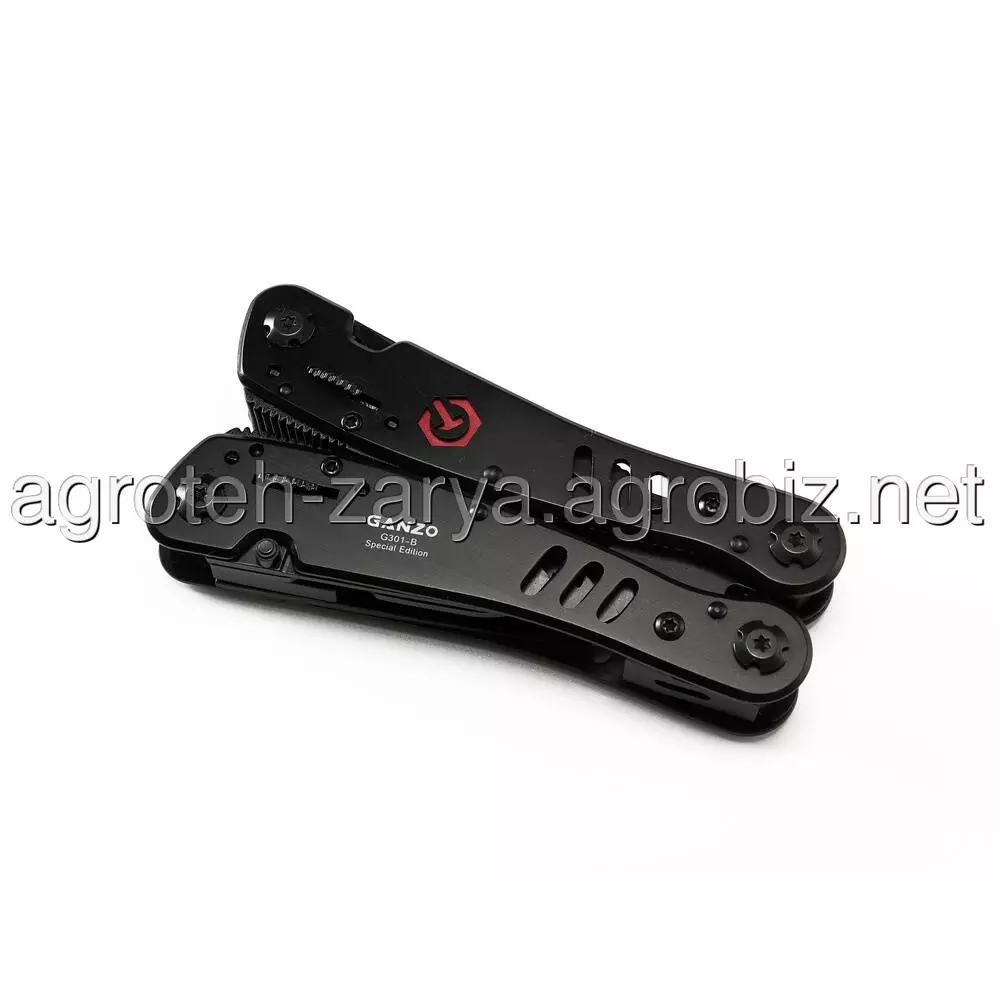 Зручний повнорозмірний мультитул G301-від компанії Ganzo. Великий набір інструментів дозволяє використовувати модель G301-В для повноцінного ремонту різноманітної техніки. В комплект мультитула G301-В входять наступні інструменти: підпружинені плоскогубці з кусачками, два леза, одне з яких має серейторну заточку, дві плоских викрутки різного розміру, пилу по дереву, ножиці, зенковку, подовжувач для адаптера, консервний ніж. Також в комплект даної моделі входити касета з адаптером та набір різноманітних біт (3 плоских викрутки, 3 хрестових викрутки, 3 шестигранних ключа найбільш популярних розмірів).