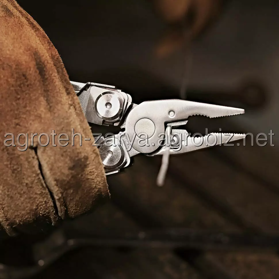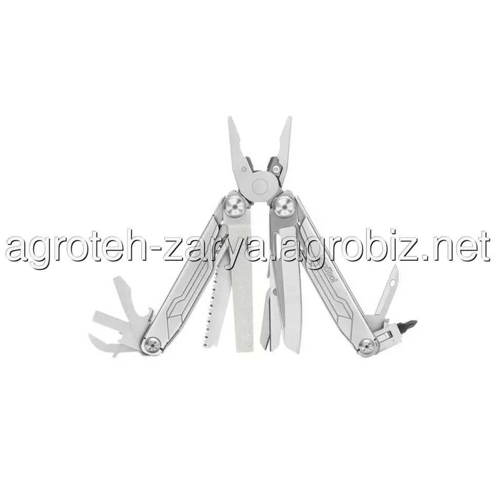 - 19 функцій. Вам доступні плоскогубці, гострогубці, кусачки, ножиці, відкривачки для банок та пляшок, ніж, пила, викрутки SL5 та SL4.5, хрестова викрутка, напилок по металу та напилок з алмазним покриттям, шило, інструменти для зачищення проводів, цвяходер та лінійка. Функціонал можна доповнити набором змінних біт, який доступний для придбання окремо.