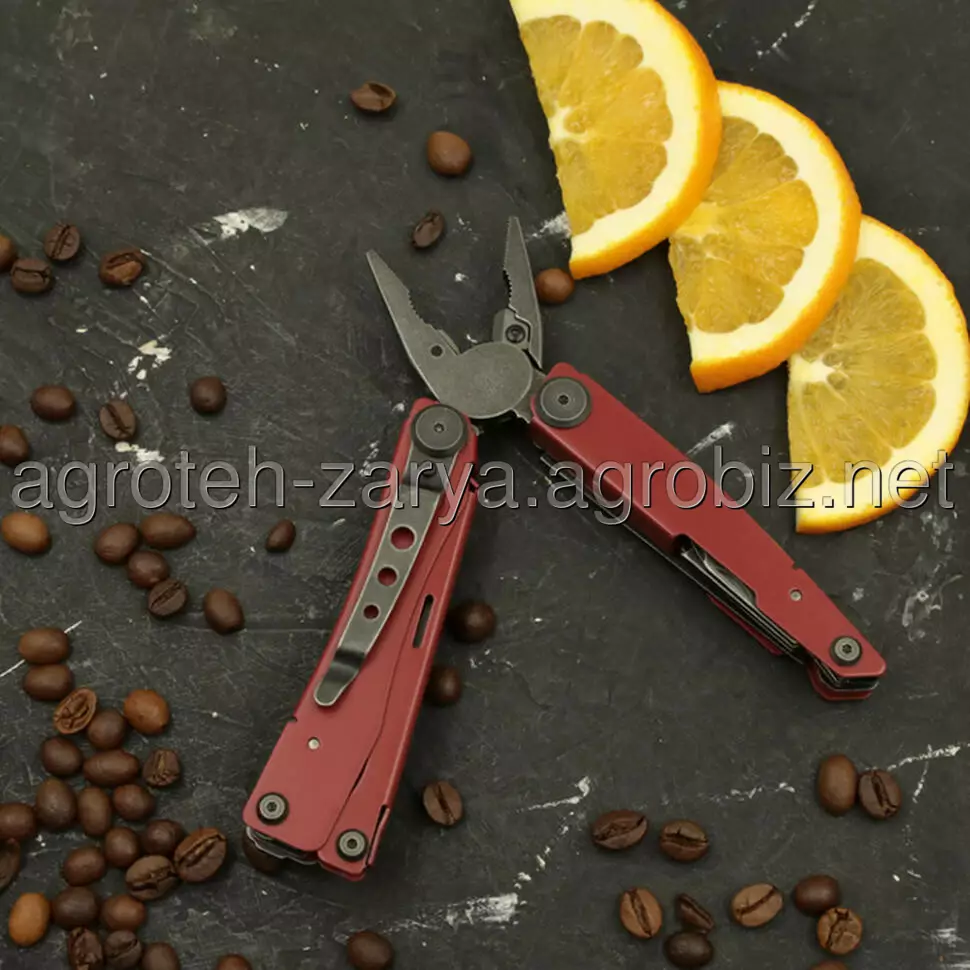 Мультитул виконує 16 функцій. Основний інструмент — плоскогубці. Їх звужені губки з ребристою поверхнею також замінюють гострогубці, а бокорізи біля основи виконують роль кусачок для роботи з проводами та дротом різної жорсткості. Гострі губки є знімними — ви можете заточувати або замінювати їх на нові у міру зношування.