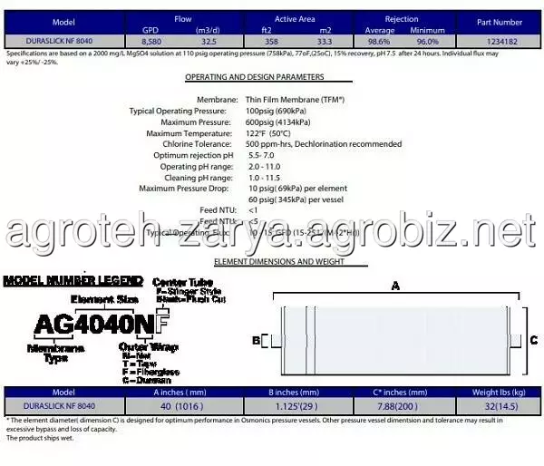 Мембрана: NF8040, 8 шт.Модуль: SP4-500PSI, 2 комплекти