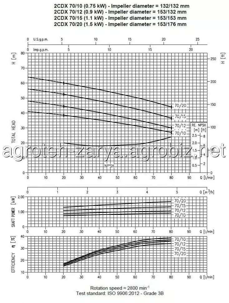 Технічні дані: продуктивність до 14,4 м3/год; висота подачі до 75 м; T.E.F.C. 2 полюсний двигун; клас ізоляції F; ступінь захисту IP 55; однофазні 220V, 50 Hz, трифазні 380V, 50 Hz; вбудований конденсатор і автоматичний захист від теплового перевантаження для однофазної версії. Для трьохфазної версії захист від теплового перевантаження повинен забезпечити споживач. Вхідний патрубок 1" 1/2 для2CDX200, 1" 1/4 для інших моделей. Вихідний патрубок 1"