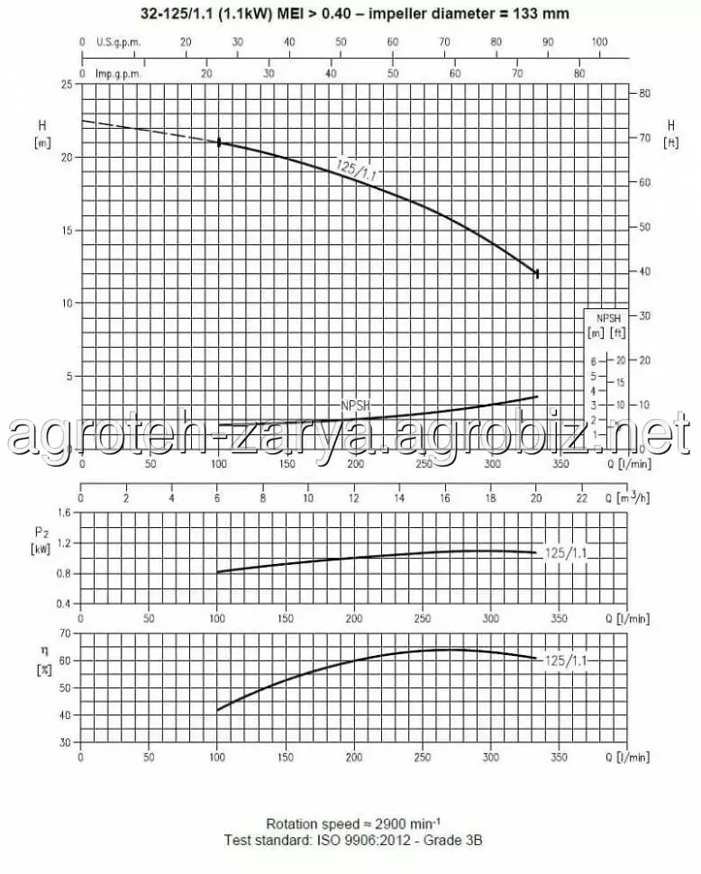 Специфікація: Продуктивність до 132 м3/год. Висота подачі до 72 м. Максимальний тиск: 1 МПа. Температура рідини, що перекачується: -10°C ÷ 100°C. по стандарту, -10°C ÷ 110°C для версії Н.
