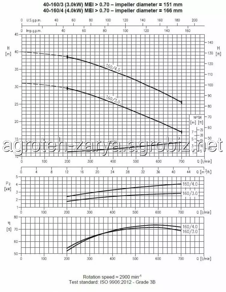 Специфікація: Продуктивність до 132 м3/год. Висота подачі до 72 м. Максимальний тиск: 1 МПа. Температура рідини, що перекачується: -10°C ÷ 100°C. по стандарту, -10°C ÷ 110°C для версії Н.