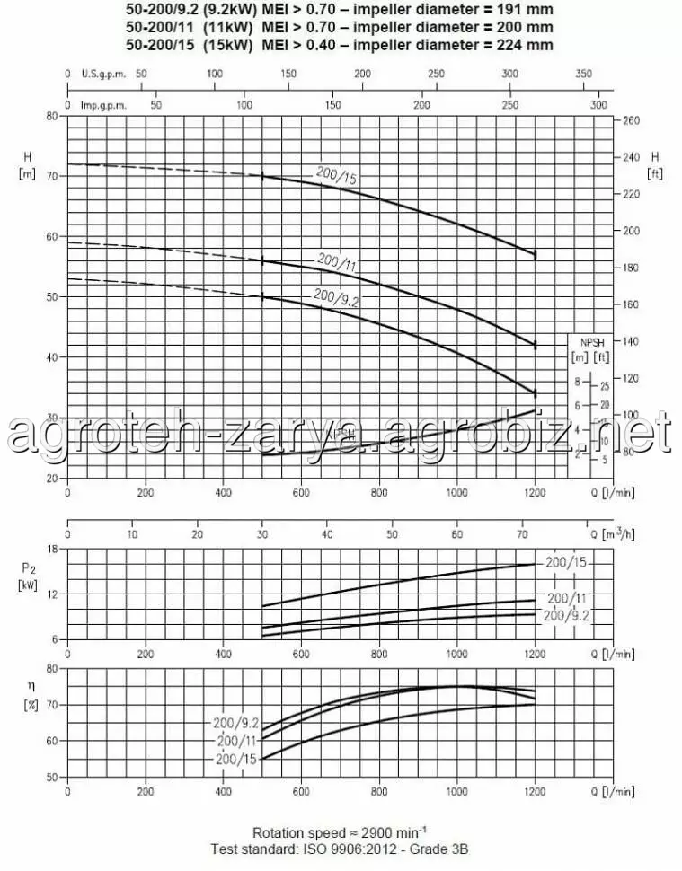 Специфікація: Продуктивність до 132 м3/год. Висота подачі до 72 м. Максимальний тиск: 1 МПа. Температура рідини, що перекачується: -10°C ÷ 100°C. по стандарту, -10°C ÷ 110°C для версії Н.