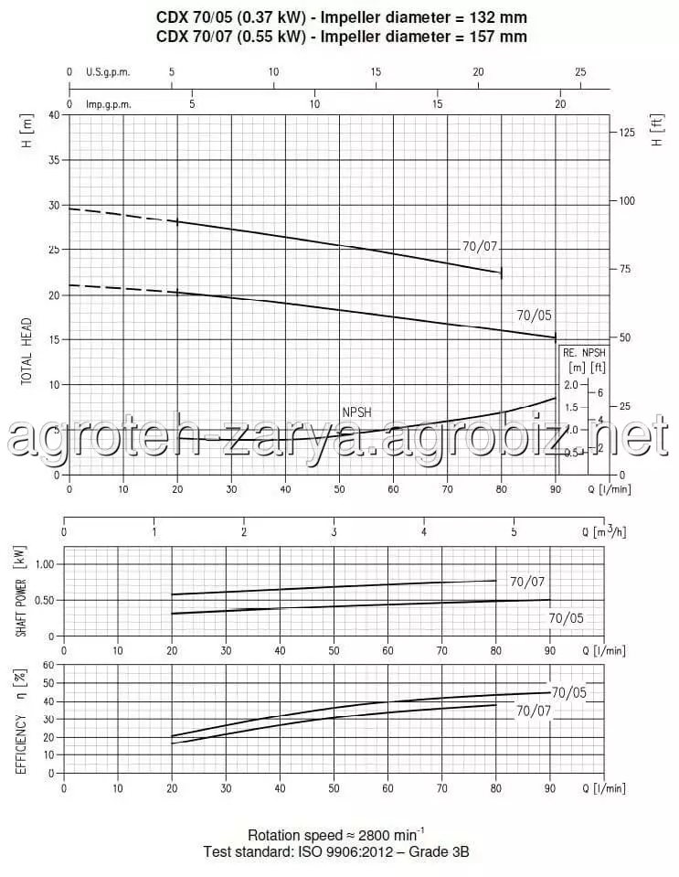 Технічні дані: продуктивність до 15 м3/год; висота подачі до 42 м; T.E.F.C. 2 полюсний двигун; клас ізоляції F; Степінь захисту IP 55; робоча напруга: однофазні 220V, 50 Hz, трифазні 380V, 50 Hz; вхідний патрубок 1" 1/2 для CDX 200, 1" 1/2 для інших моделей; вихідний патрубок 1"