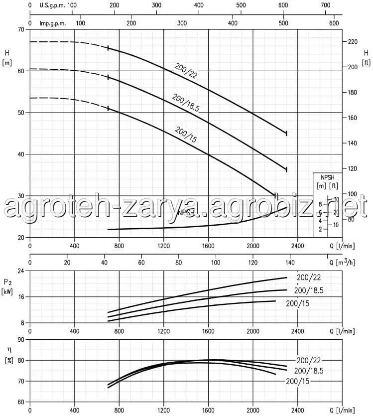 Специфікація: Продуктивність до 132 м3/год. Висота подачі до 72 м. Максимальний тиск: 1 МПа. Температура рідини, що перекачується: -10°C ÷ 100°C. по стандарту, -10°C ÷ 110°C для версії Н.