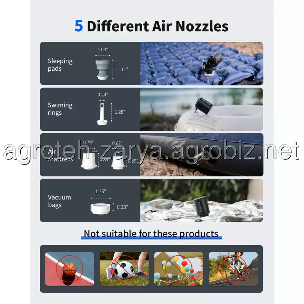 Зверніть увагу! Насос не підходить для надування SUP-дощок, повітряних куль, спортивних м'ячів та шин.