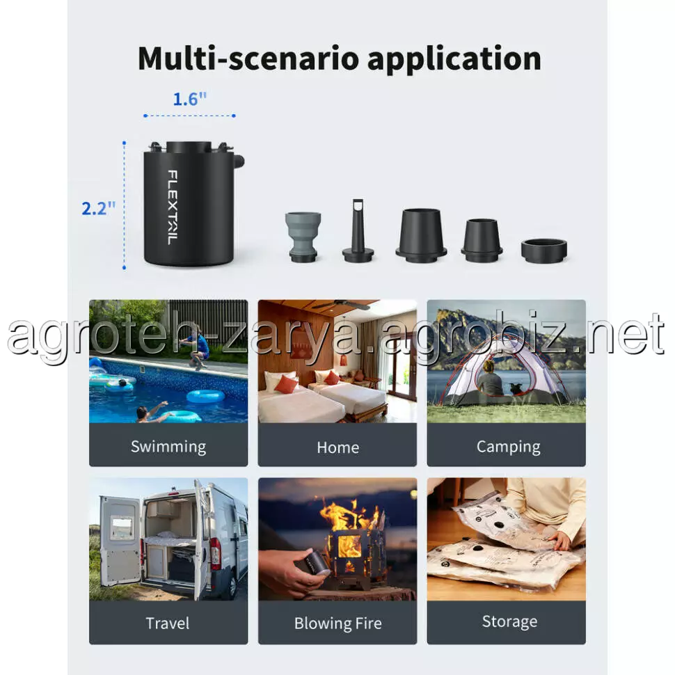 Акумуляторний насос Flextail Tiny Pump підходить для накачування та здування туристичних матраців, подушок, вакуумних пакетів тощо. Його також можна використовувати для розпалювання багаття.