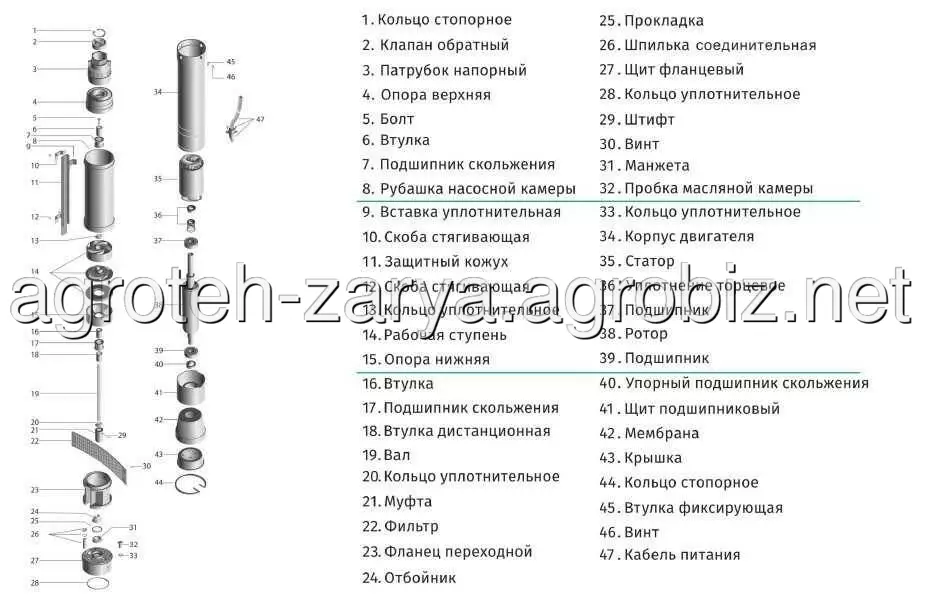 Тип двигуна: асинхронний, маслонаповнений, з вбудованим в обмотку термозахистом;