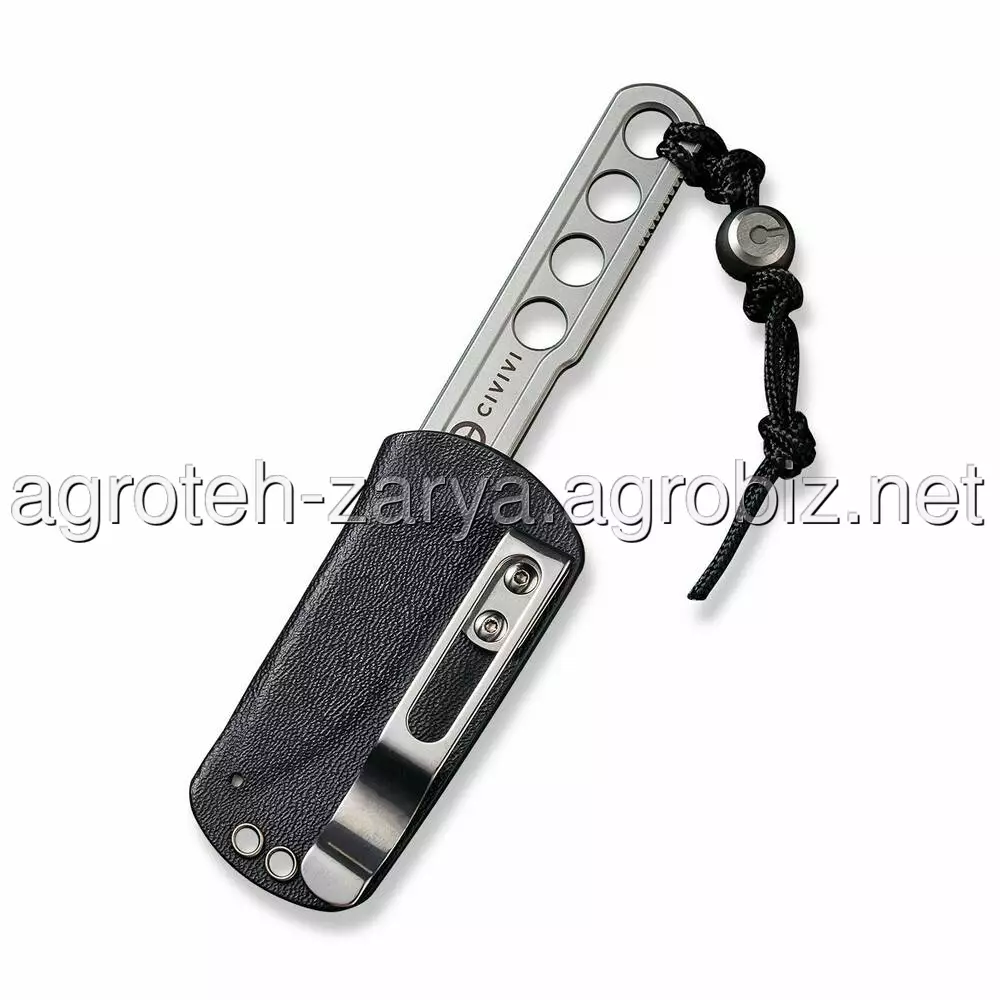 У комплекті з ножем є темляк з фірмовою бусиною CIVIVI. Ніж додатково оснащений кліпсами.