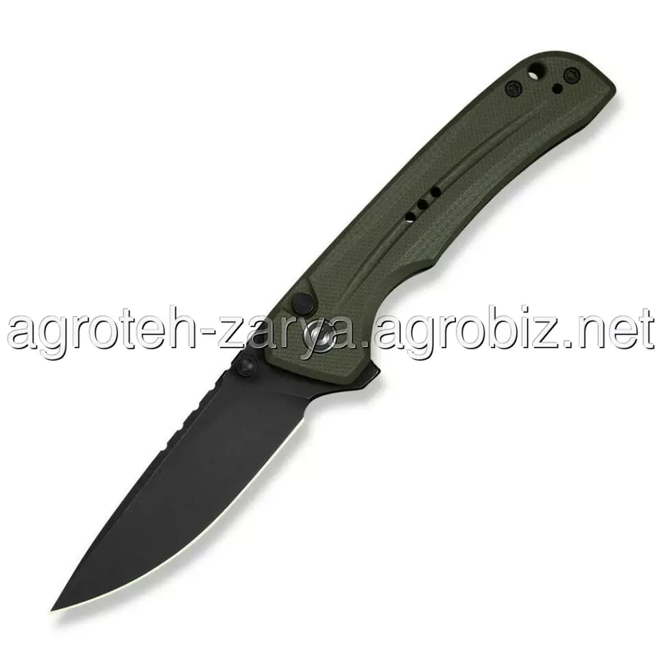 - Руківʼя з накладками G10. Склотекстоліт відрізняється легкою вагою, жорсткістю та стійкістю до вологи, хімії та перепадів температури. Текстурована поверхня забезпечує надійне зчеплення з долонею. Сталеві лайнери підвищують загальну міцність конструкції.
