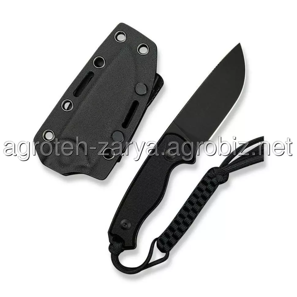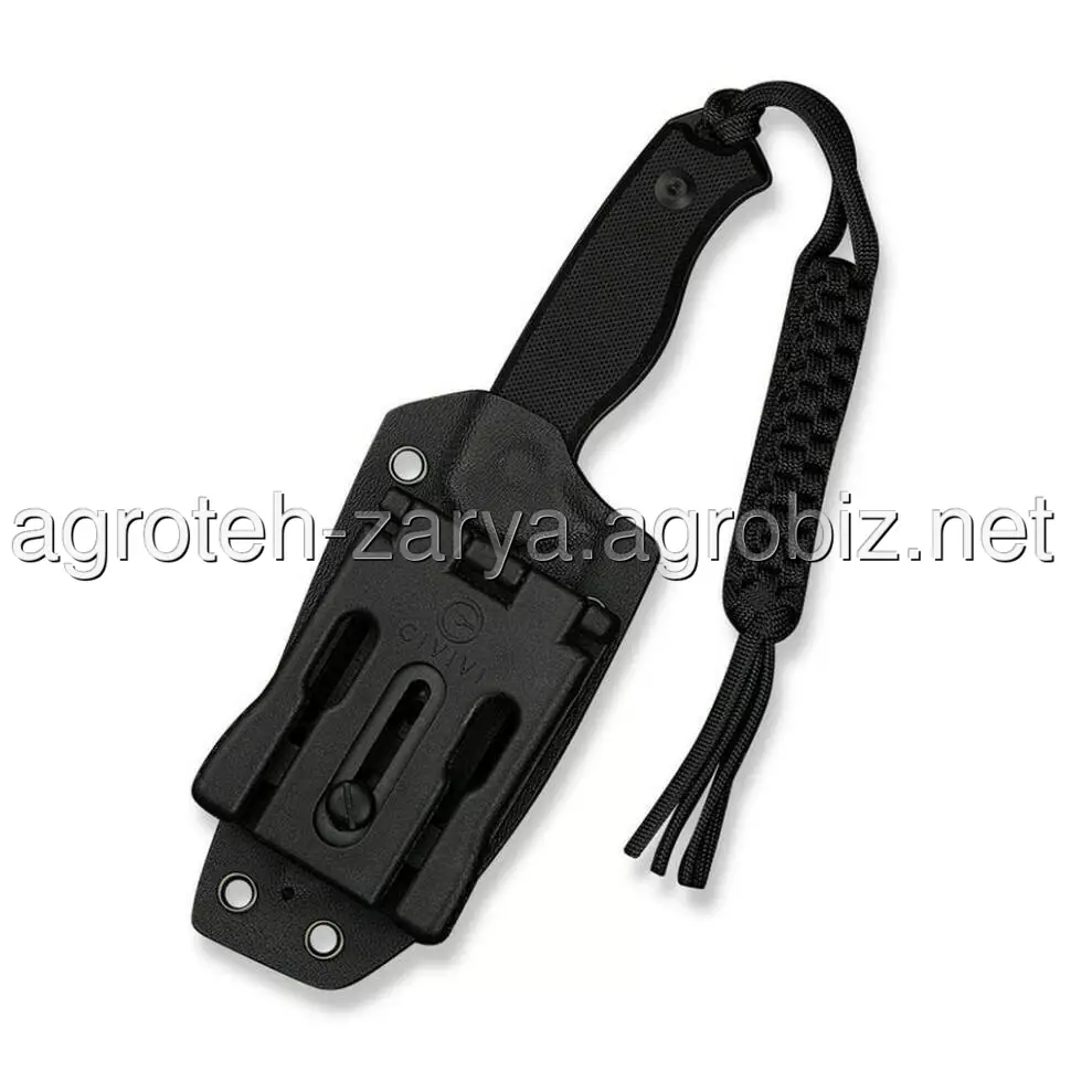 Хвостова частина доповнена плетеним паракордом як прикраса. В комплекті також є чохол з кайдекса із затискачем, розробленим ножовим дизайнером Бобом Терзуола. Затискач з обертовою системою фіксації дозволяє встановлювати ніж у зручному для вас положенні: вертикально або горизонтально.