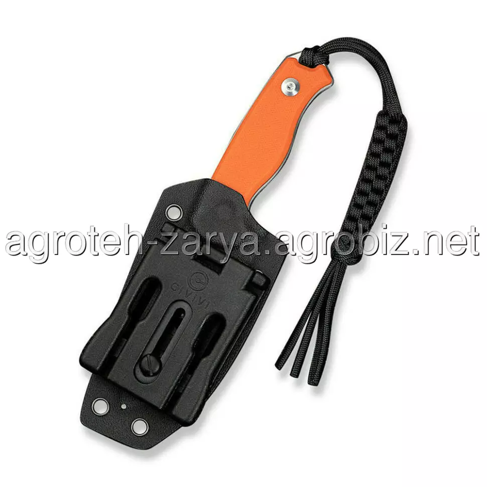 Хвостова частина доповнена плетеним паракордом як прикраса. В комплекті також є чохол з кайдекса із затискачем, розробленим ножовим дизайнером Бобом Терзуола. Затискач з обертовою системою фіксації дозволяє встановлювати ніж у зручному для вас положенні: вертикально або горизонтально.