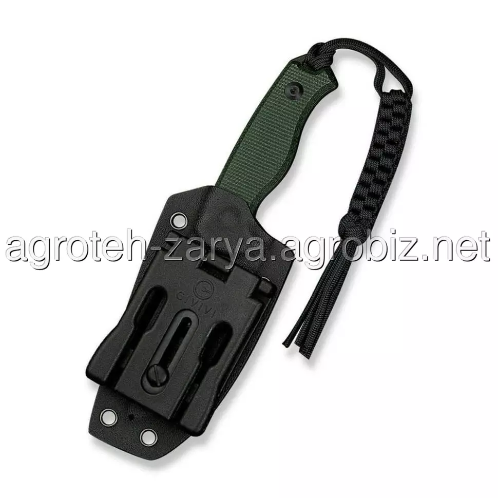 Хвостова частина доповнена плетеним паракордом як прикраса. В комплекті також є чохол з кайдекса із затискачем, розробленим ножовим дизайнером Бобом Терзуола. Затискач з обертовою системою фіксації дозволяє встановлювати ніж у зручному для вас положенні: вертикально або горизонтально.