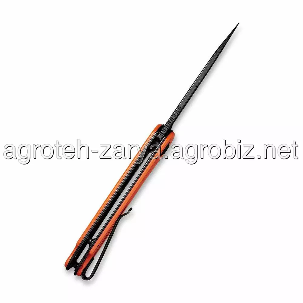 Ручка із сталевими елементами, виготовлена з матеріалу G10, який характеризується високою міцністю і легкістю. Він виготовлений зі скловолокна та синтетичної смоли. Завдяки легкій текстурі чудово лежить у руці та забезпечує добре зчеплення.