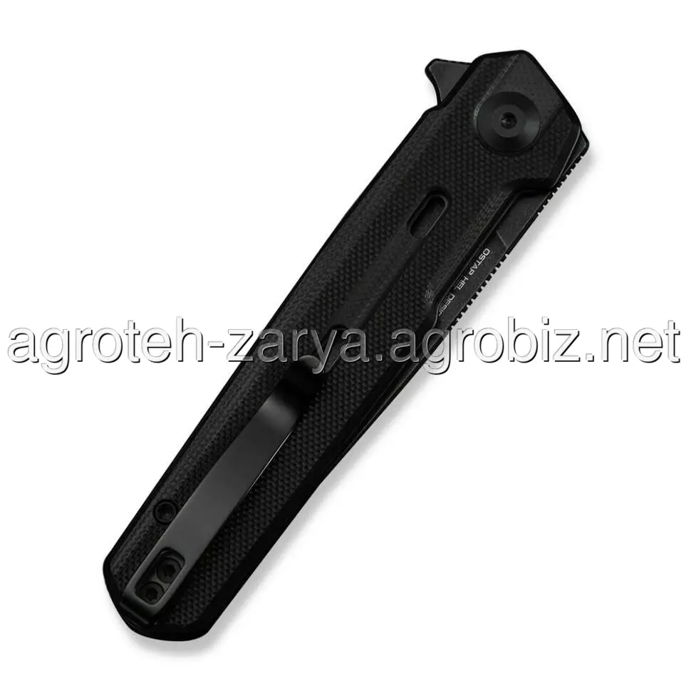 Civivi Navo комплектується кліпсою Tip-Up, яку можна встановлювати на правий або лівий бік руківʼя. У хвості також є сталевий штифт для кріплення темляка.