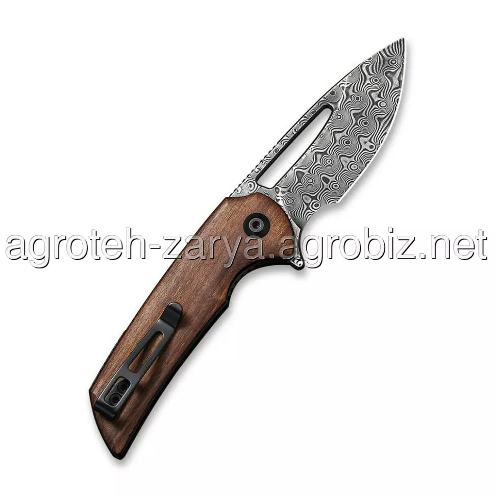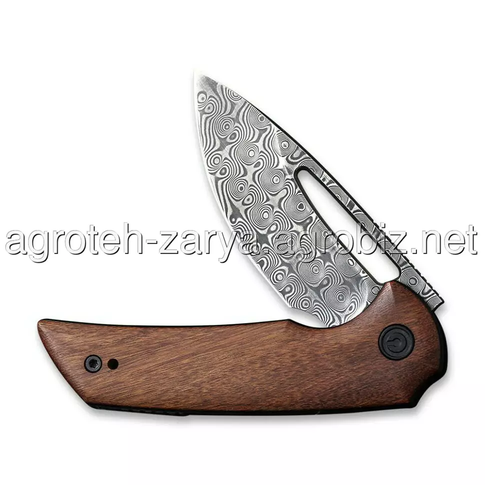 Широкий клинок drop point відкривається за допомогою плавця фліпера або отвору для великого пальця. Лезо має надзвичайно плавний хід, оскільки в осьовому вузлі стоять керамічні кульковальники.