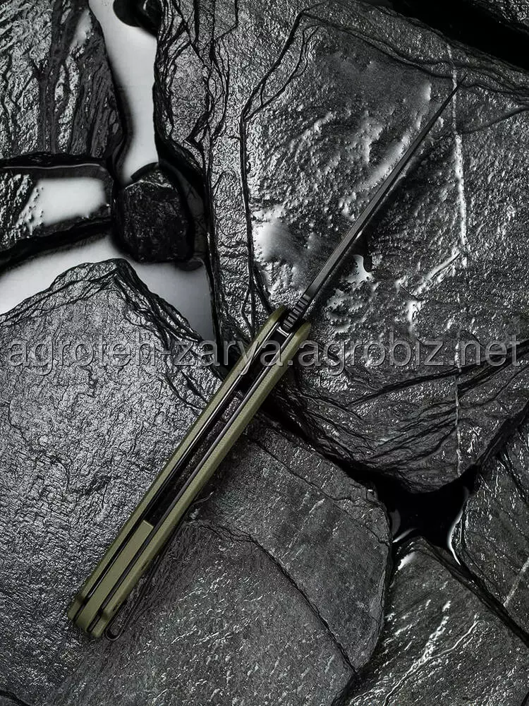 Ручка виготовлена із склотекстоліту G10. Міцний та легкий матеріал із скловолокна та синтетичної смоли. Легка текстура чудово лежить у руці та забезпечує достатнє захоплення. Є кліпса, щоб можна було закріпити інструмент на кишені, прикріпити його до пояса або зафіксувати на рюкзаку.