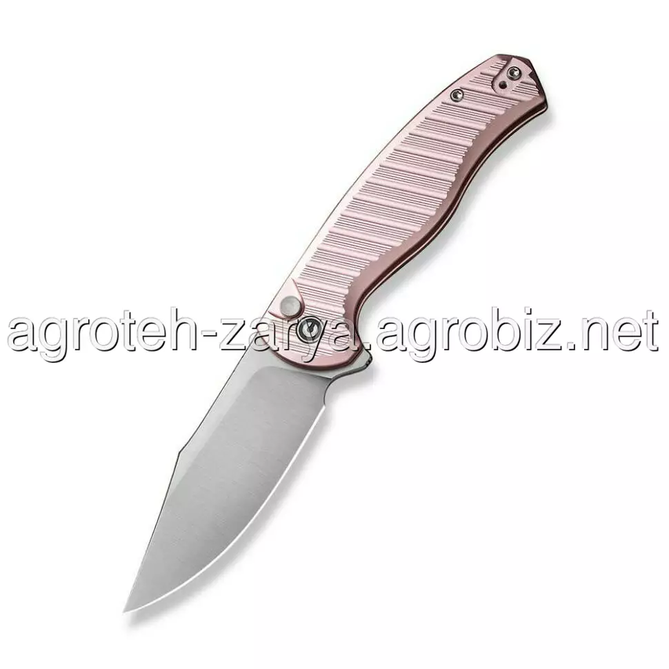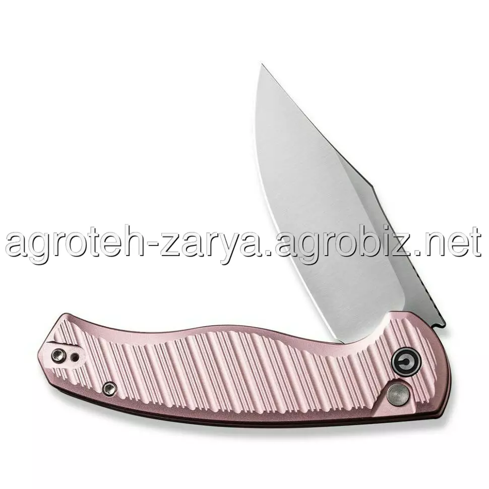 Модель має складану конструкцію: 83.8 мм припадають на клинок з прямим заточуванням, а 110.3 мм — на руківʼя ніжно-рожевого відтінку. Для розкриття леза достатньо натиснути на плавець фліпера, після чого ніж миттєво відкривається до фіксації, за яку відповідає замок button lock. Виробник приділив особливу увагу механіці та укомплектував інструмент керамічними підшипниками, що значно покращило плавність ходу леза.