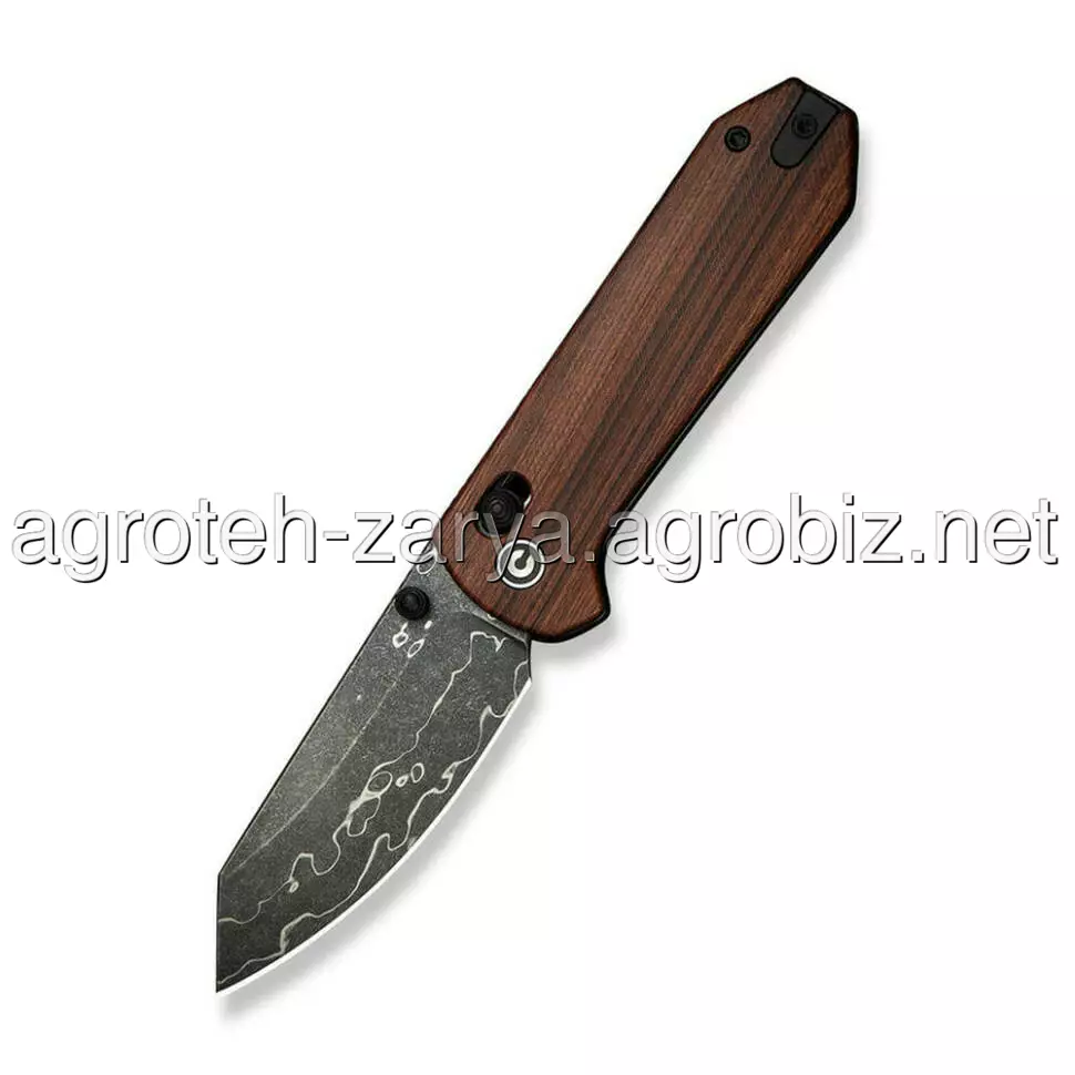 - Клинок з дамаської сталі. Багатошарова структура наділяє сталь гнучкістю та міцністю, запобігаючи появі сколів під час високих навантажень. Ще одна особливість дамаска — хвилеподібний візерунок, який надає ножу унікального вигляду.