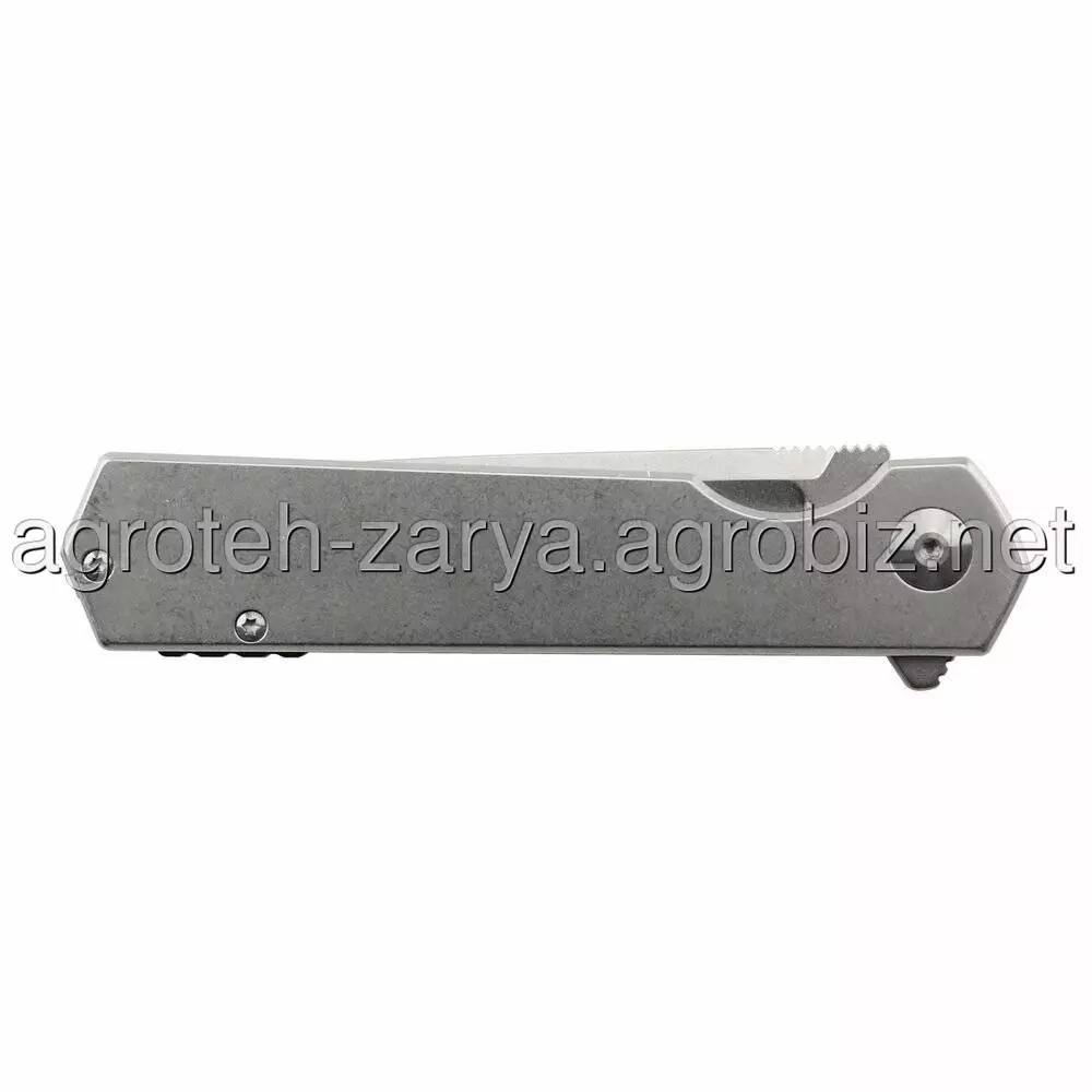Метал для форматування рукоятки використовується інший – нержавіюча сталь. Щоб ніж зручно лежала в руці і не ковзав, у його ручки прямі обриси з невеликою виїмкою для пальців знизу. А носити його в кишені найзручніше, закріпивши для надійності металевої кліпсою, прикрученою з однією з сторін рукоятки. За бажанням власника, цей елемент можна переставити на іншу сторону.