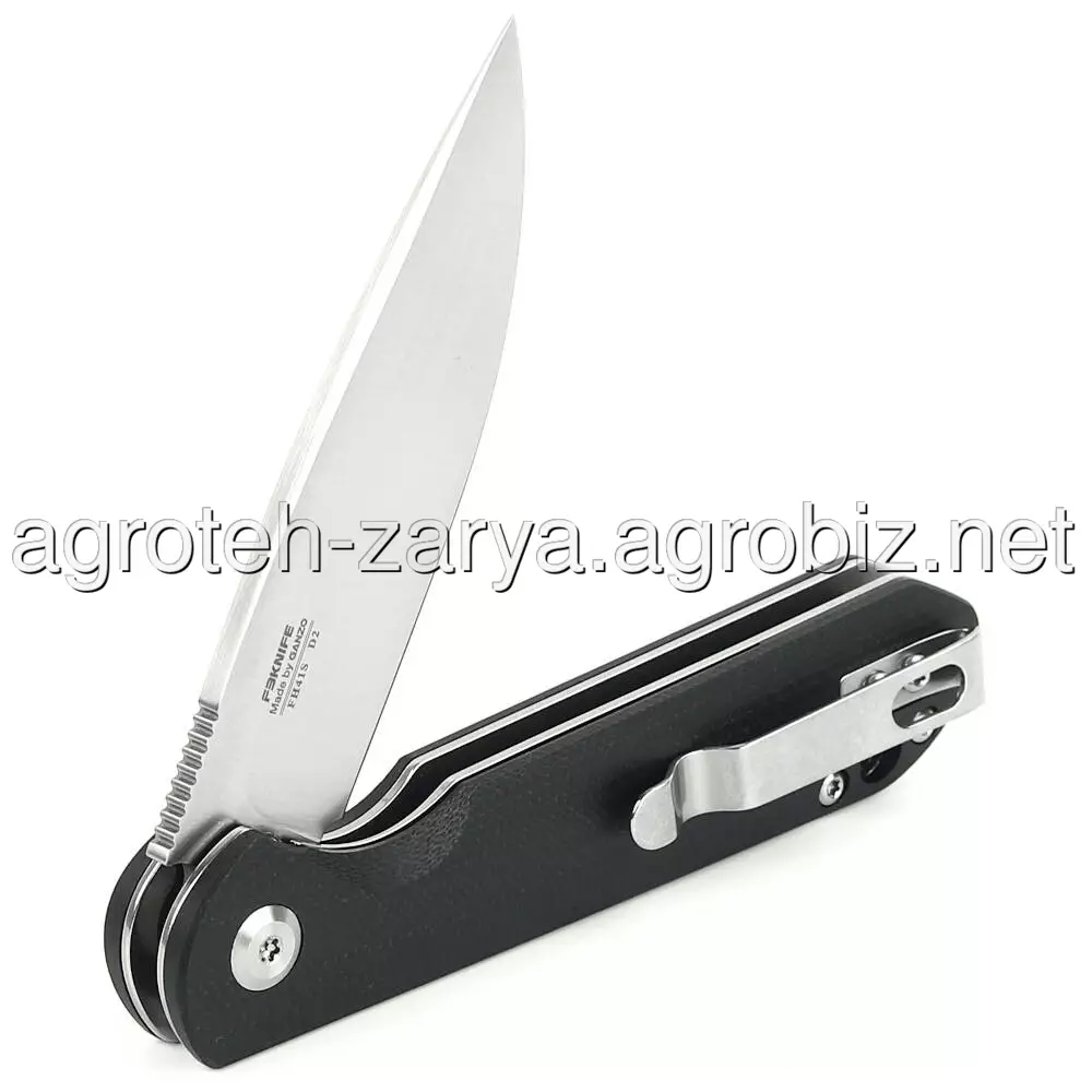 Лезо Firebird FH41S-BK виготовлено з інструментальної сталі D2. Даний сплав-гарант ефективності і довгого терміну служби виробу, завдяки збалансованому складу. Вміст хрому в сталі коливається в межах 11-13%, що робить матеріал стійким до появи корозійних плям при попаданні на клинок води або впливі агресивних середовищ. Головна перевага даної сталі-тривале утримання заточування навіть при інтенсивних навантаженнях, включаючи роботу з такими щільними матеріалами, як деревина. При цьому клинок не деформується і не вимагає багато часу і сил для заточування — для цього підійде звичайний точильний камінь. Для відкриття ножа досить натиснути пальцем на сталевий плавник, після чого клинок намертво фіксується для подальшого безпечного використання.