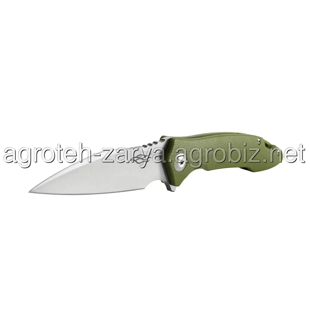 Клинок в даній моделі має форму Clip point. У нього добре виражена вістря, що дозволяє не тільки різати, але і колоти. Обух леза скошений, через що здається, що ця область теж заточена. ріжуча кромка зроблена гладкою по всій довжині, а тому ножем зручно працювати практично з будь-якими матеріалами. Довжина клинка становить 81 мм, а його максимальна товщина по обуху – 3,5 мм.